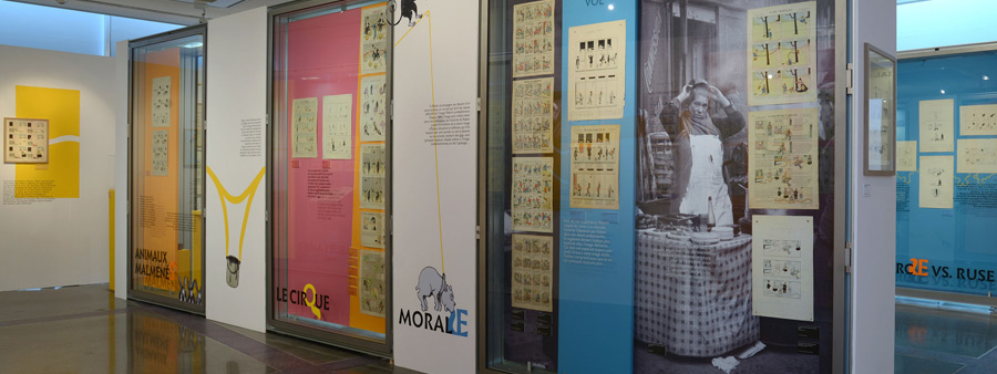 Les 21 images en feuille (dessins originaux à l’appui !) et les albums créés par Benjamin Rabier signent les débuts de cet illustrateur génial et prolifique. Dans ses histoires facétieuses on retrouve tour à tour des hommes dupés, des enfants pas sages… et surtout des animaux, tantôt naïfs ou espiègles, tantôt gagnants ou victimes, à l’image du renard rusé bien souvent malmené… L’humour du 19e siècle est surprenant, le trait de l’artiste est précis, la composition est proche de la bande-dessinée.